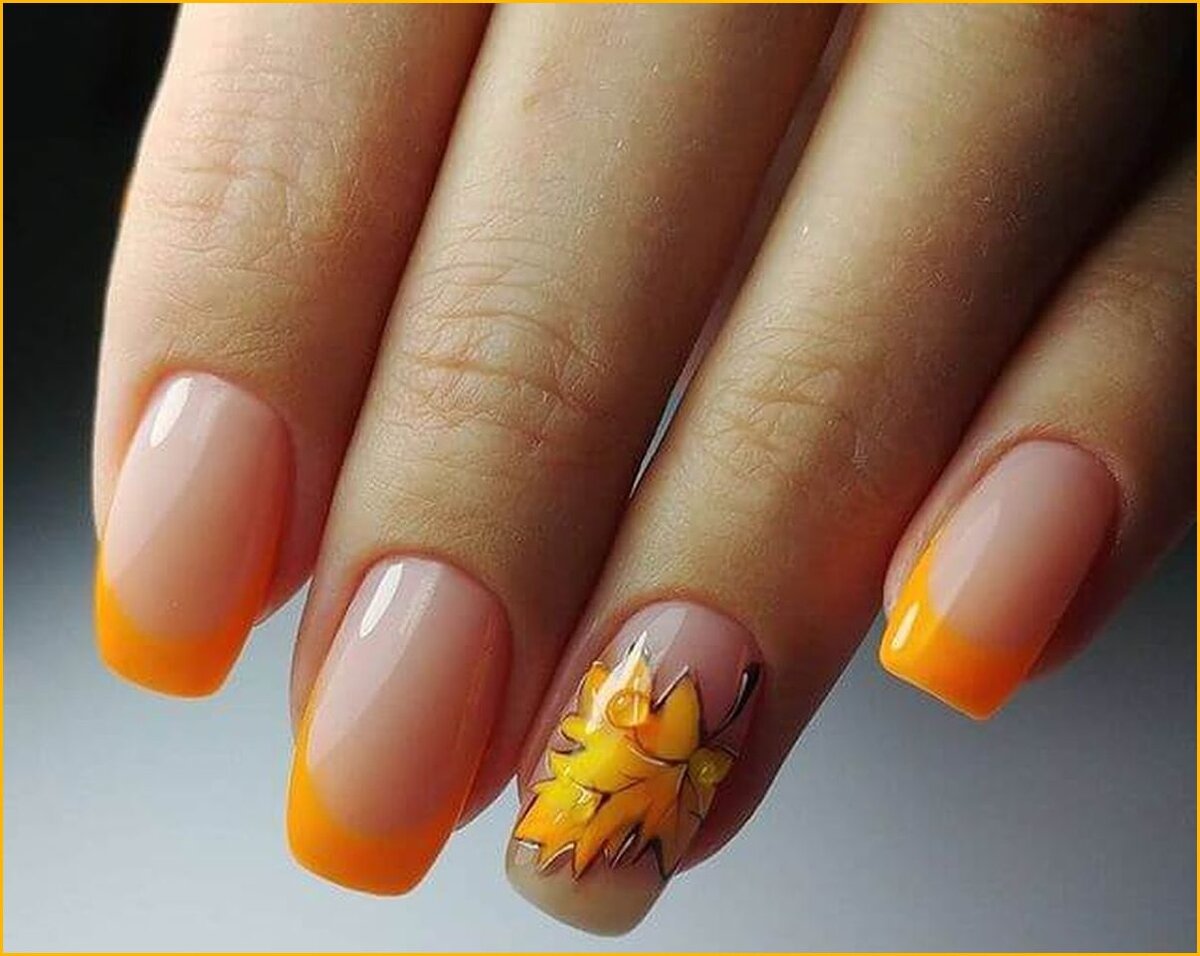 Осенний френч 2022. Оранжевый френч. Осенний дизайн ногтей