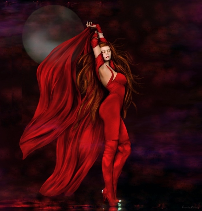 Ведьма в Красном платье. Девушка в Красном арт. Девушка в Красном фэнтези. Рыжая девушка в Красном платье арт