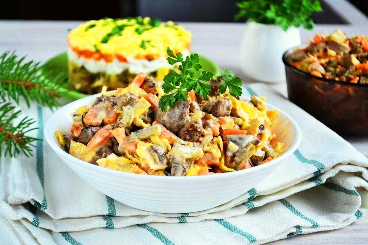 Салат Обжорка с куриной печенью. Салат Прато с куриной печенью. Салат с куриной печенью и солеными огурцами. Салат с печенью и солеными огурцами