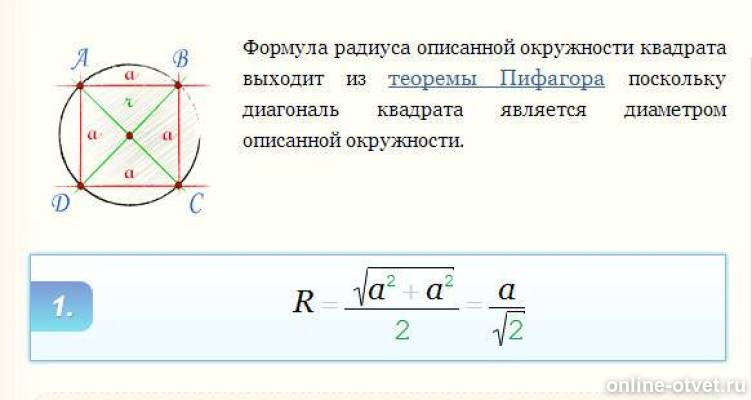 Формула радиуса описанной окружности квадрата. Радиус описанной окружности квадрата. Радиус описанной окружности около квадрата. Радиус описанной окружности около квадрата формула